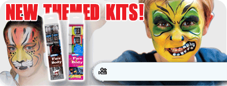 Using a clean palette knife or other utensil, remove as much paint from the container as necessary for the session and replace lid. Do not return unused paint to the container. Place on a palette or other clean non-porous surface. Mix the required secondary or tertiary colours on this palette. Apply the colours as thinly as possible to avoid cracking - if more coverage is required apply subsequent thin coats. Apply your base colour first using a damp (not wet) sponge. You can apply a second coat when the first is dry if you desire a stronger colour. You can even load up the sponge with more than one colour, then apply with a dabbing motion across the face for a colour gradient effect. Use the brush for detail work; bold continuous strokes work best. It is strongly advisable, if painting more than one face, to use a disposable applicator such as cotton wool and discard after each person - be careful not to re-immerse the applicator in the paint.